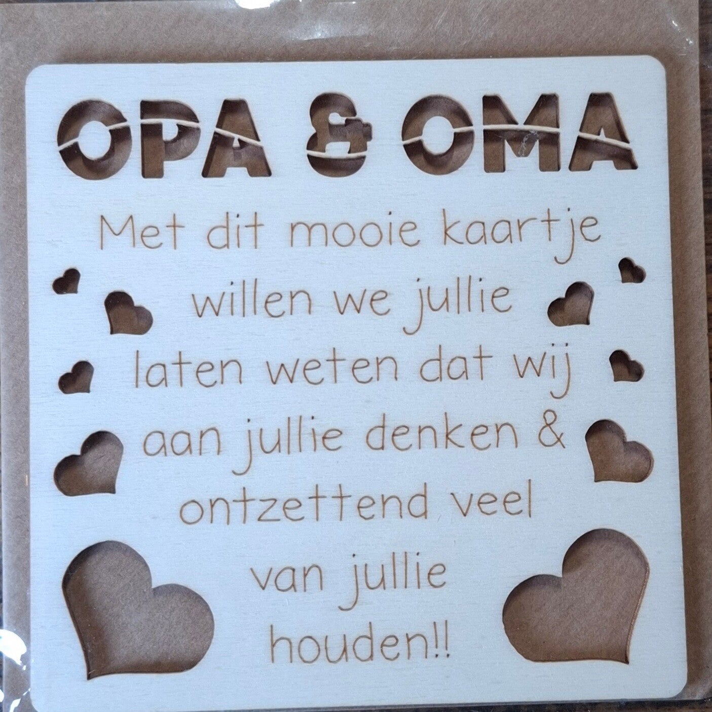 ✨ Set houten kaarten voorzien van een standaard, inclusief briefje voor tekst en een envelop.📏 Afmetingen: 11x11cm🎨 Kleur: Natural🌿 Materiaal: Hout