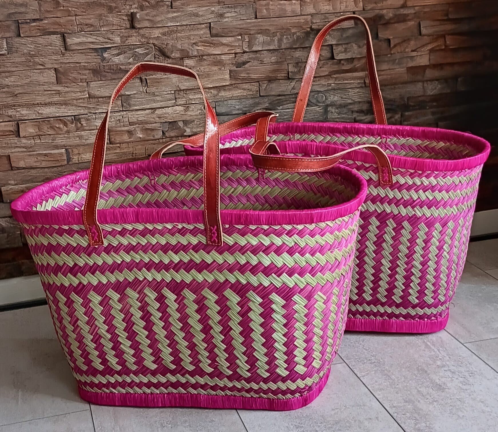De levendige kleuren en natuurlijke materialen geven elke tas een unieke, warme uitstraling – geen één is hetzelfde.